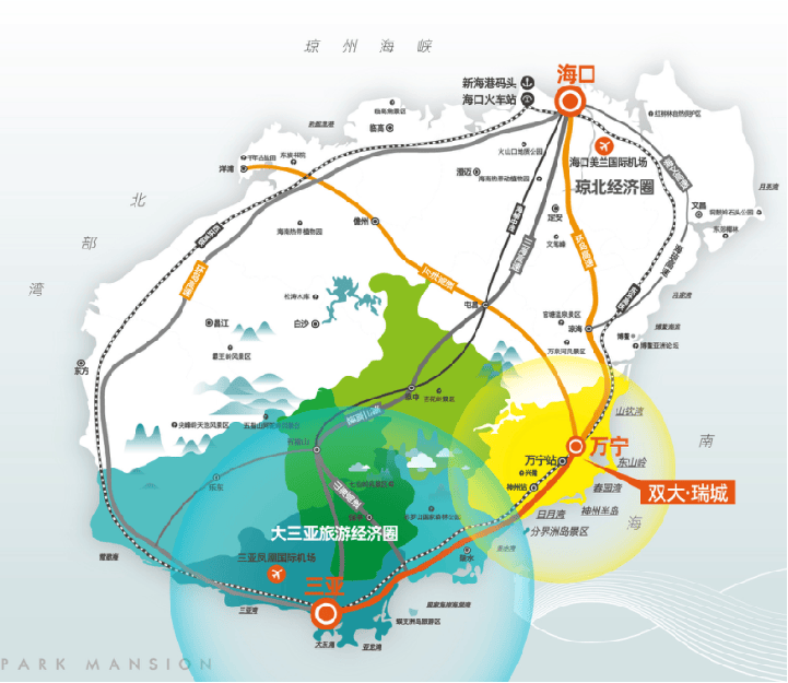 纵横万州大道、望海大道市区两大干道,多条公交线路通达全城,接驳万宁高铁站,衔接博鳌机场,实现“出则繁华,入则静谧”;