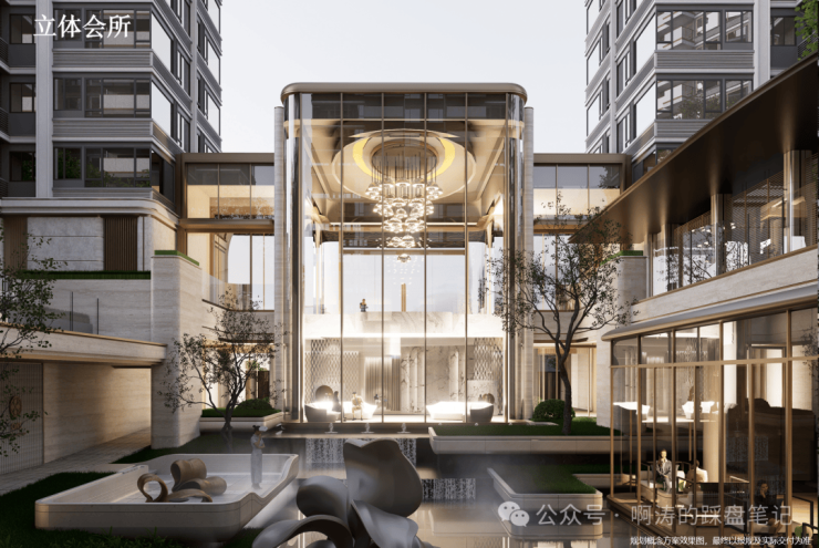 引领现代奢居美学范式,打造下沉式立体会所,覆盖娱乐、健身、儿童、交流等功能交叠的会所聚落,室内外景观功能相互渗透。