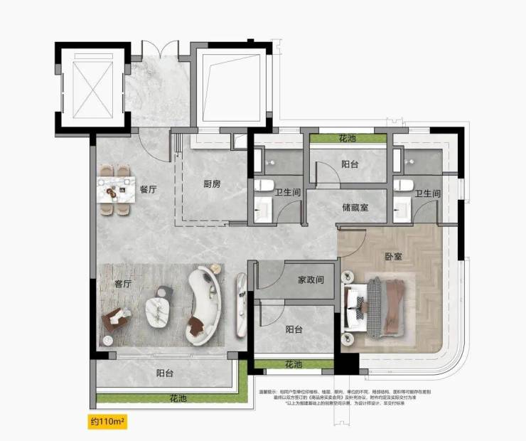 “宽幕视野” 南北通透双视野,主卧270°转角飘窗
