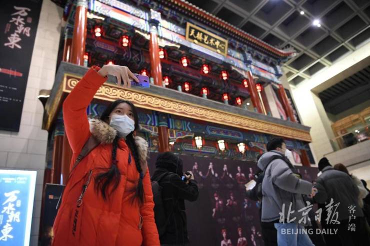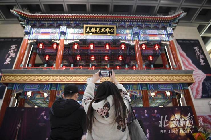 12月22日,首届“大戏看北京”展演季展演剧目,音乐剧《基督山伯爵》在天桥艺术中心首演。当天,观众们走进剧场欣赏当晚演出。