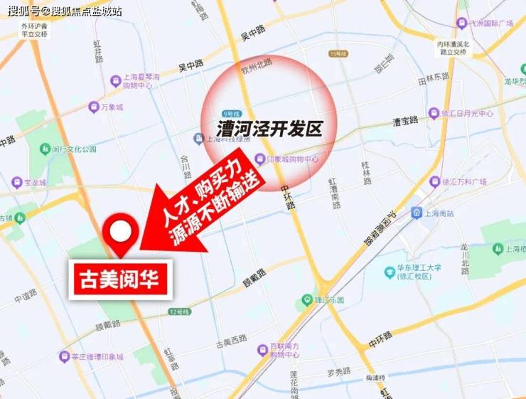产业层面,漕河泾是上海产业龙头、万亿级产业园。古美阅华直线距离漕河泾仅2.5km,地铁2站直达。