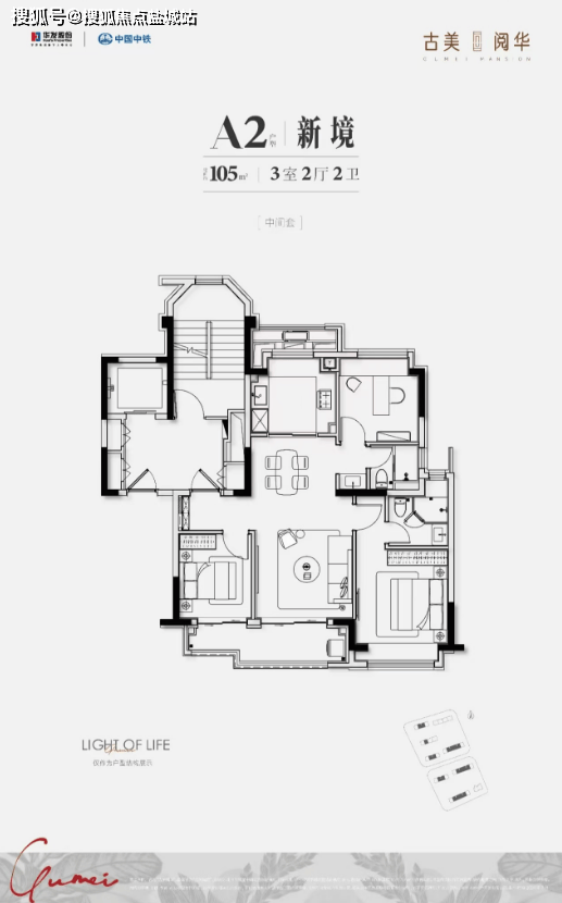 二期建面约105㎡3房、建面约90㎡2房