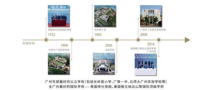 长岭居小学、北师大广州实验学校(小学部)提供基础教育服务,并且初中阶段可通过摇号方式进入三所名校之一学习。
