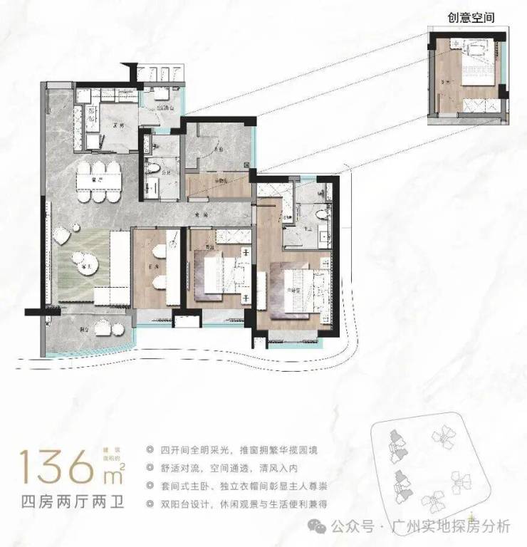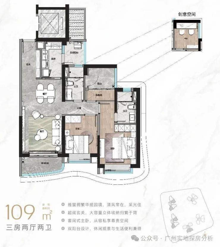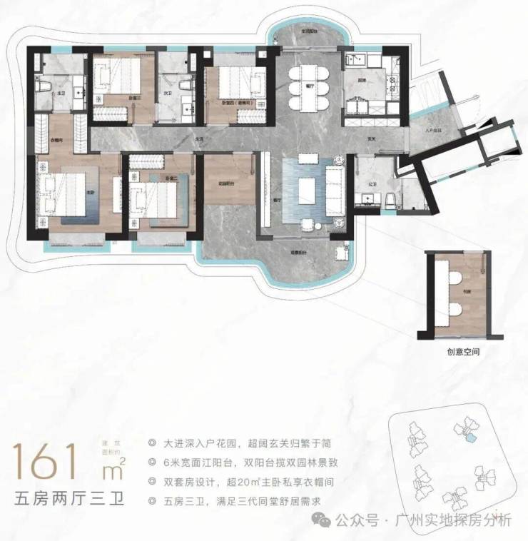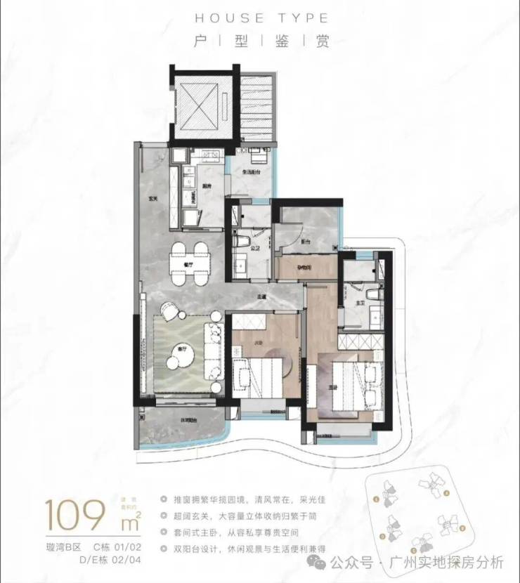 项目分为5大组团,其中3大高端住宅组团(璇湾A区、璇湾B区、湾区壹号)、2大商办组团(璇湾公馆A栋和B栋)。