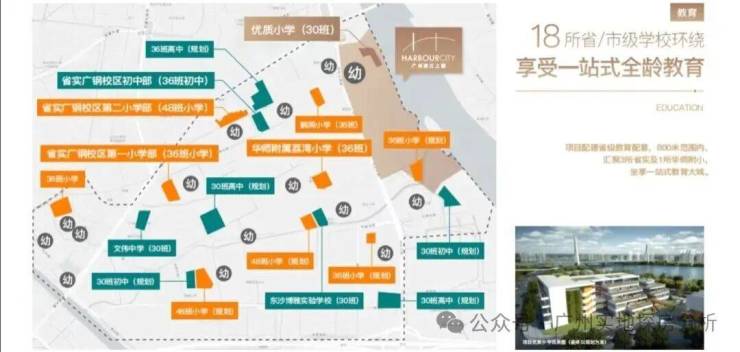 项目配建一所12班荔湾区少年宫附属幼儿园和托儿所和一所30班广东外语外贸大学附属茘湾小学,2024年9月份已开学,今年依旧只开1个班。