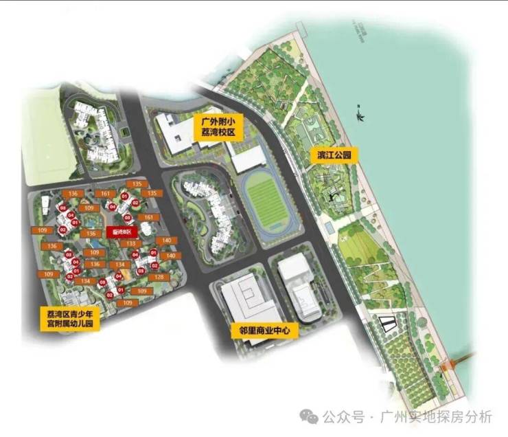 项目位于荔湾广船板块白鹅潭片区,坐落于珠江后航道之上,沿江而建与广钢相连,与广纸相望,分三期地块进行规划打造。