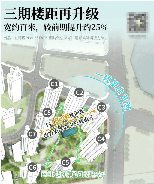 最高楼间距超100米(部分实测),远超行业标准,保障采光、通风与私密性;