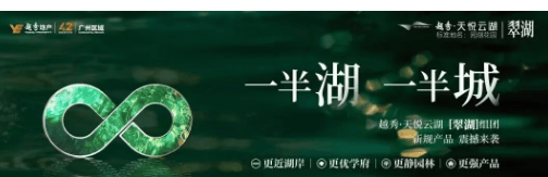越秀·天悦云湖:白云湖头排湖居标杆,83㎡起新规三四房+金广附九年一贯制+8号线地铁,国庆额外9折+10年物业费!