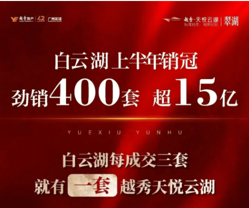 作为广州本土龙头房企,越秀地产深耕羊城40余年,打造过珠江新城IFC、越秀和樾府等标杆项目,以“地段精准、产品扎实、交付可靠”著称。天悦云湖正是其在白云湖板块的代表作,已连续多月稳居区域销量榜首。