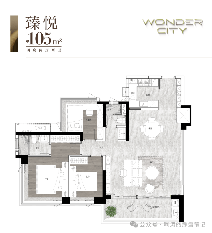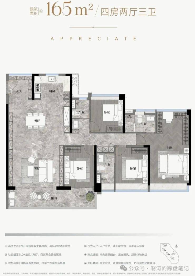 ✅真跃级:约3.75m开间主套,步入式衣帽间+270°景观飘窗+三分离卫浴;