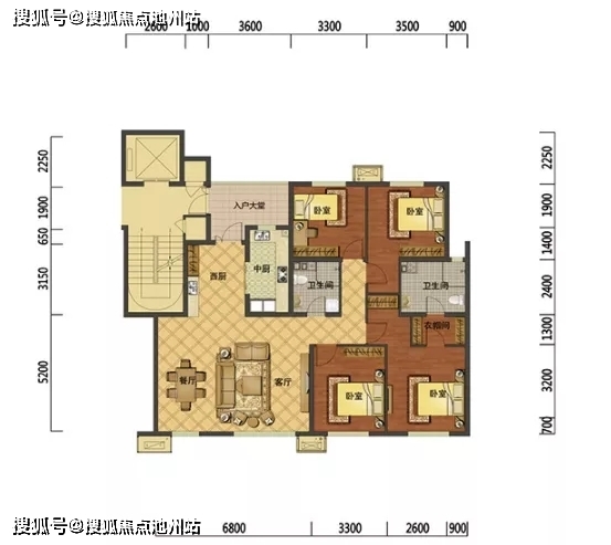130平四居可以说是很经典的一个户型了,南北通透,四个卧室基本在四个角,互不干扰,主卧室独卫套间,有衣帽间;餐客一体,空间更大,明厨明卫,就是厨房进深稍微有点长,不过也不是问题,整体看来是个不错的户型。