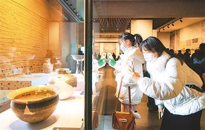 1月25日,人们在河南洛阳二里头夏都遗址博物馆参观。