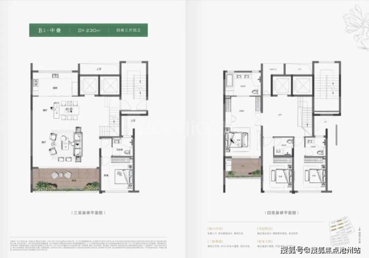 产品定位纯粹,全为叠墅与排屋,主打超高的空间附加值和得房率。上叠户型约200-250㎡优势是拥有约76.8㎡顶层超大露台,实现了空中庭院的梦想;下叠户型约200-250㎡亮点在于南北双庭院,并赠送约6.25米挑高的地下室;排屋户型约269-335㎡户户独门独院,约1.5米的整体抬升设计,创造了约7.75米层高的双层地下室,并可实现三面采光,彻底革新了地下室的使用体验。