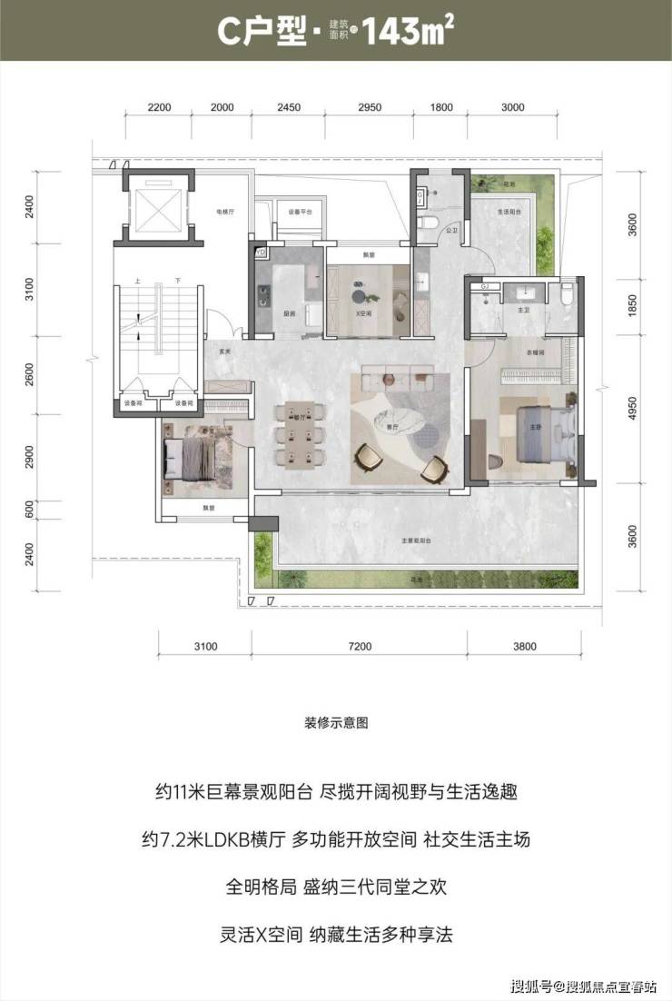【面积区间】建筑面积约110㎡、131㎡、143㎡、195㎡