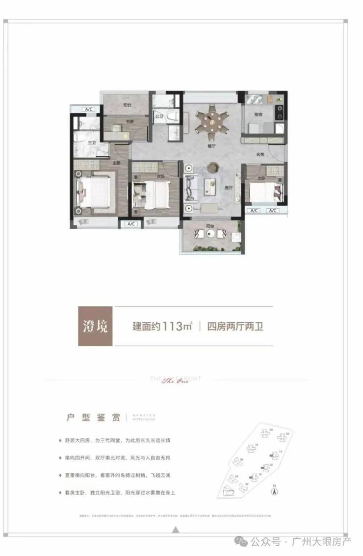 【113㎡四房二厅二卫】双厅南北对流,大飘窗设计,享受极致开阔!