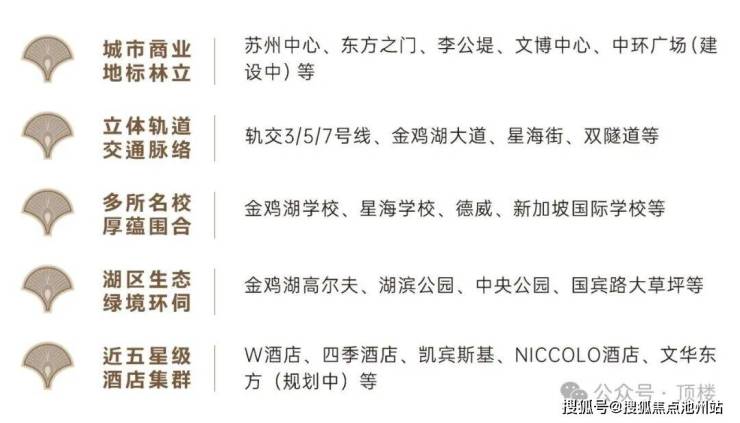 坐揽金鸡湖与独墅湖城市地标、商业旗舰、城市公园、五星级酒店、文化剧院等繁华盛景,苏州中心、东方之门、中环广场等地标配套环湖而立,奢享开放包容的国际滨水生活圈。