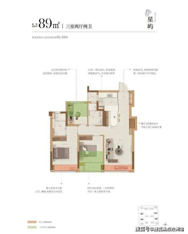 沐芳洲主力户型建面约89-132方,最高实际得房率达到100%,是目前杭州得房率最高的新盘之一。