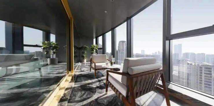 独特造型与视野:三叶草造型赋予建筑灵动美感,环幕舱式布局实现每户270°超宽屏采光,大面积玻璃幕墙提升通透感,可俯瞰城市与江景2。