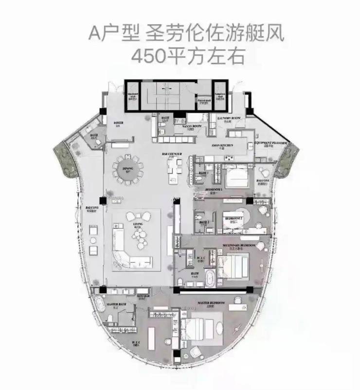 户型面积 约430、450㎡ 精装现房-总价1680万起!
