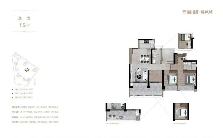 【户型】约85-98㎡瞰江望园三房;约138-165㎡全智能江景四房