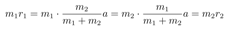 在上式的最后一步使用了前面得到的结论:m1*r1=m2*r2。