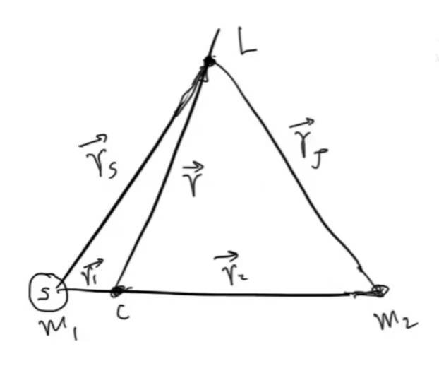 换言之,r_s是从太阳到位置r的矢量,r_j是从木星到位置r的矢量,具体可以参看下图。