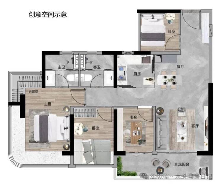 主卧270°弧形飘窗,直面广袤绿意