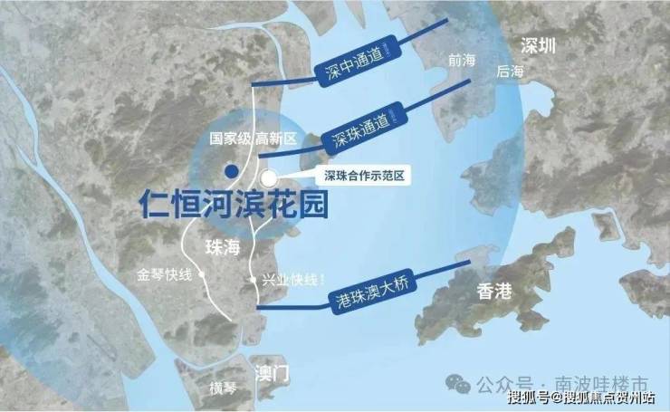 仁恒・河滨花园选址粤港澳大湾区珠江核心城市区域 —— 珠海唐家灣高新區。这里不仅是国家级高新区,同时也是深珠通道落腳点第一站,深珠合作示范区距此仅 2 公里。