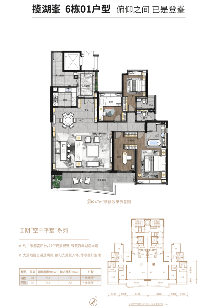 揽湖峯 6 栋 247㎡ 南向湖景天际平墅大平层