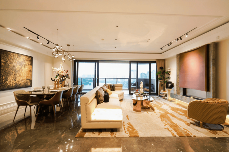 :345㎡的南向户型,实现全幕瞰湖的极致体验,湖景资源得到最大化利用。顶奢创意设计,从装修风格到空间布局,都体现出高端与奢华,为居住者带来无与伦比的居住享受。