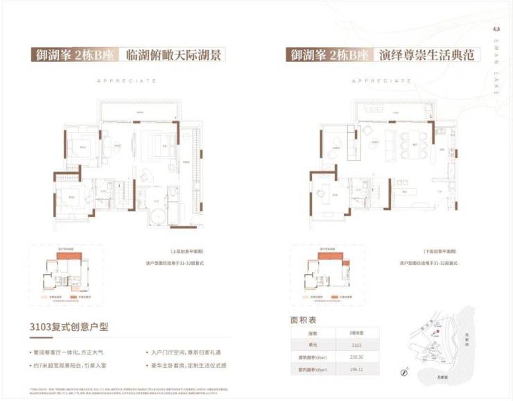 御湖峯 2 栋 B 座 3103 复式户型 238㎡ 创意双钥匙多功能轻奢顶复