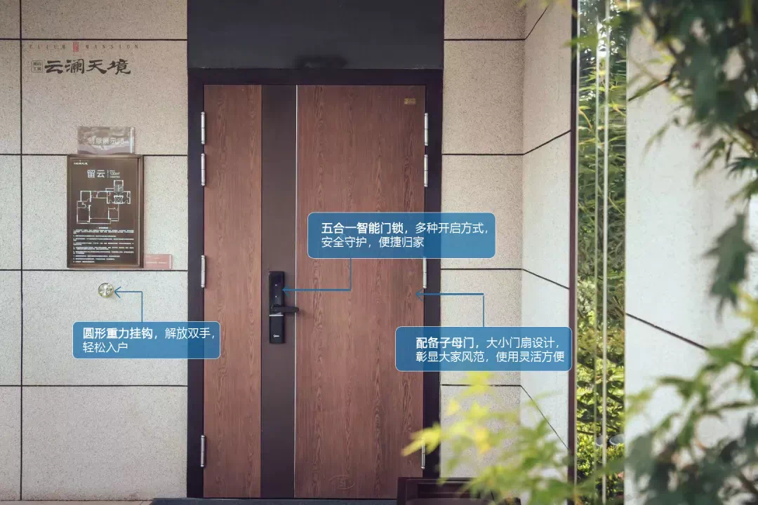 入户门采用五合一智能门锁,搭配钥匙、指纹、密码、APP、感应卡等多种操控模式,保证安全私密的同时,为业主提供更多归家可能,智能与科技感从归家的那刻便已经开启。而且,贴心的入户挂钩设计,让每一次归家都可释放双手。