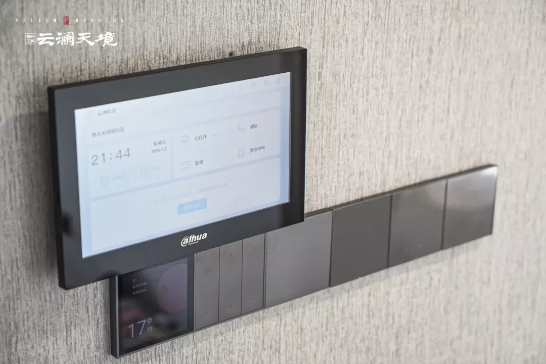 入户的墙面上,设置有可视对讲系统。摒弃繁琐的入户登记与出门迎接,主人可通过可视对讲系统识别访客身份,并且能够切换多种场景模式,同时可视对讲系统中还包含一键call物业功能。