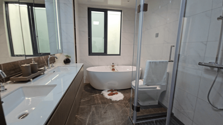 亮点:层高约3.1米,主卧豪华套房,尺度感十足,主卫可放双台盆+浴缸!并且该户型南向直面约5700㎡公共绿地,几乎是朝南无遮挡,低楼层也能保证充足采光!