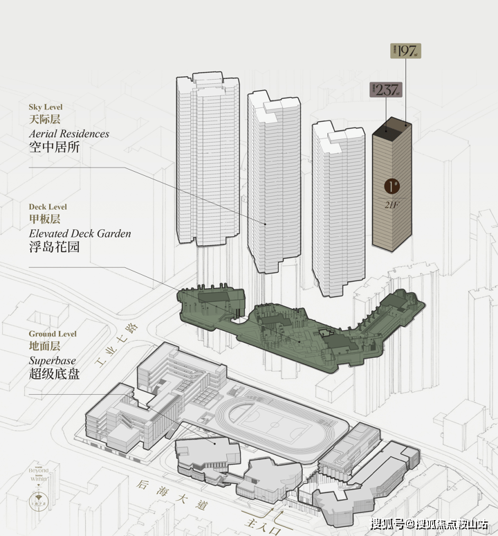 这一设计,借鉴了香港、新加坡的垂直复合开发模式,其本质是 一次彻底的结构创新。它不仅重新定义了地面与天空的关系,更旨在创造一个丰盈、叠加的立体生活场。