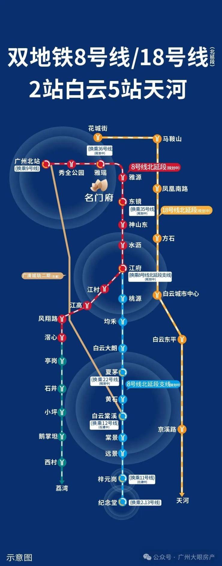 距18号线北延段凤凰南路站约2公里,目前土建施工中,预计2026年6月28日试运营,未来5站直达天河,随时畅享主城繁华。