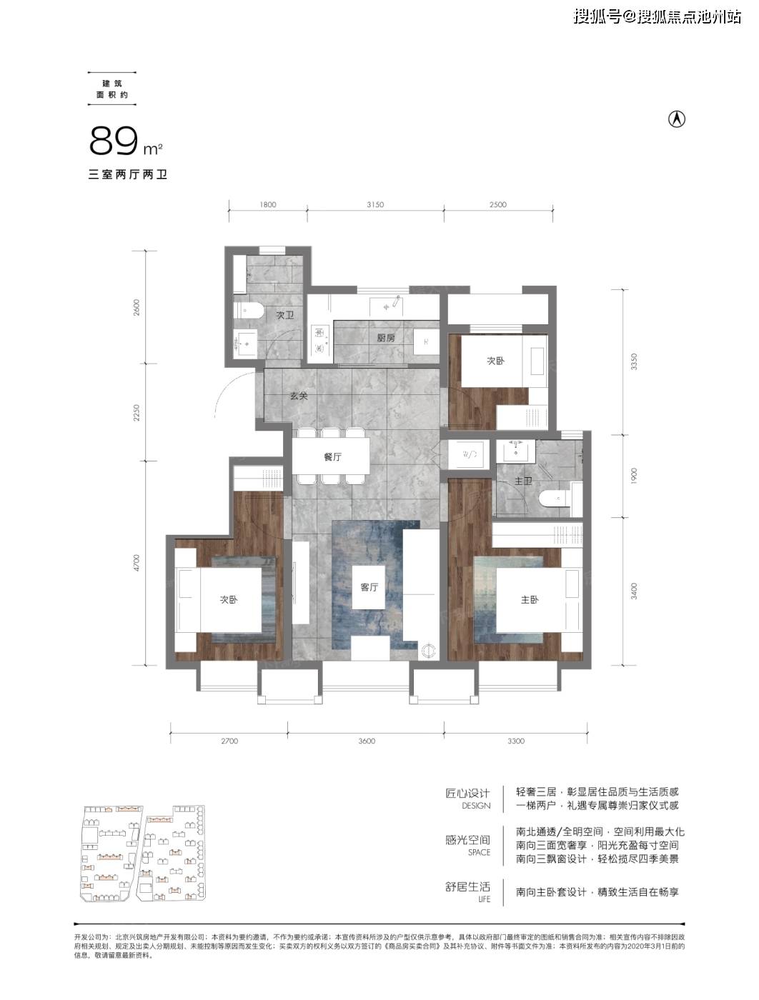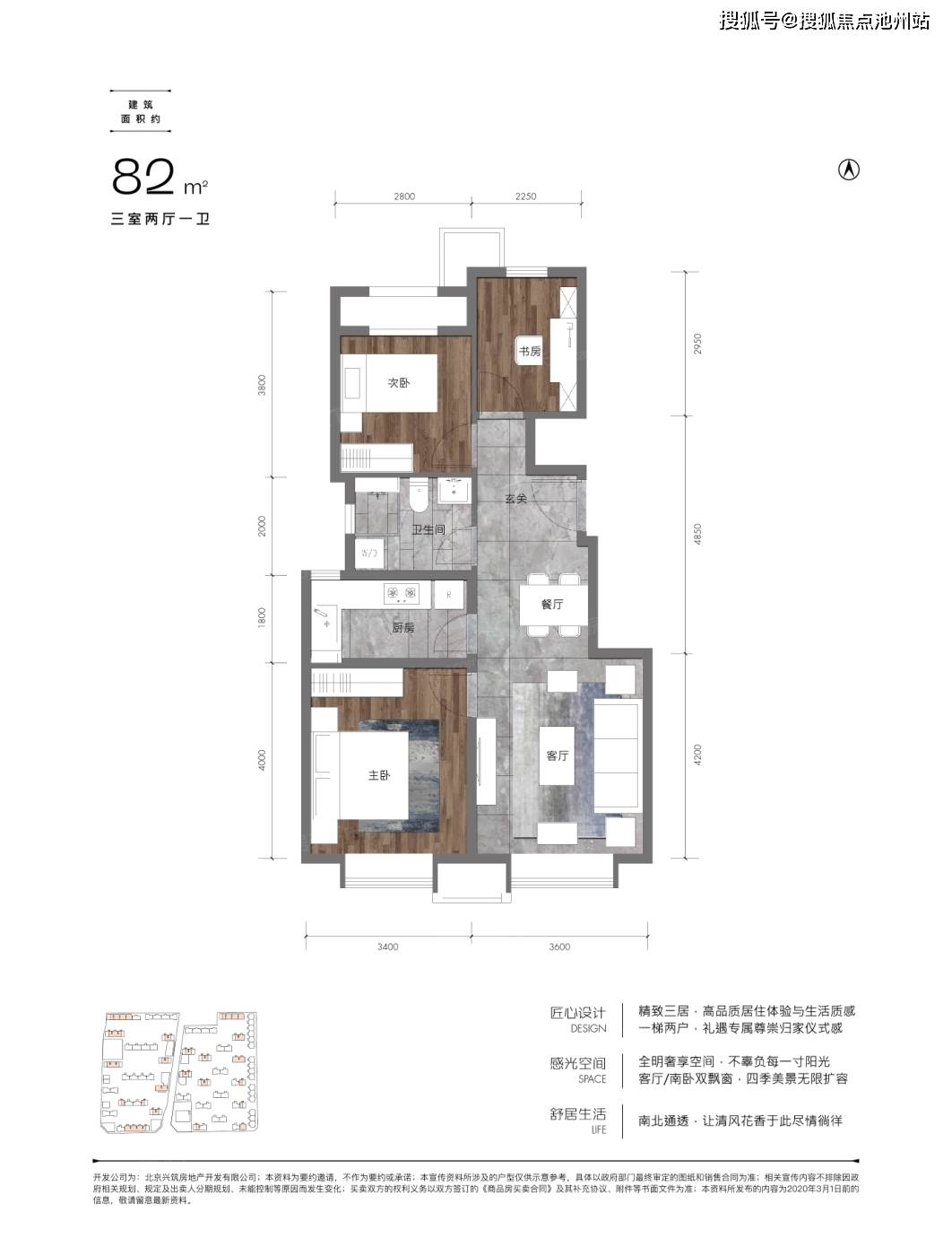 目前市场上常见的小户型三居在89㎡左右,而和悦春风将三居最小户型做到了建面约82㎡的尺度,在满足功能需求的前提下保证了更低的总价,本户型还做到了南向约7米的超大采光面,且为全明户型,堪称三居产品中的性价比之王,是刚需置业者的优选。