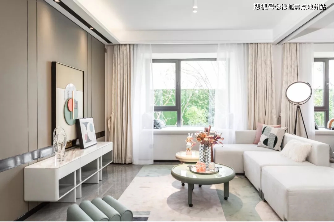 建面约86㎡巨幕三居,总尺度超7米L型观景飘窗,270°环景巨幕,与风景无界共生。同时,为了给每一位居者更好的安全性和使用效果,特在角窗进行了技术优化,使用上下大梁代替承重柱,实现真正的无边框设计效果。除了日常的观景作用,L型飘窗还可以代替家中的传统沙发功能,为空间扩容,提升家中整体空间实用率