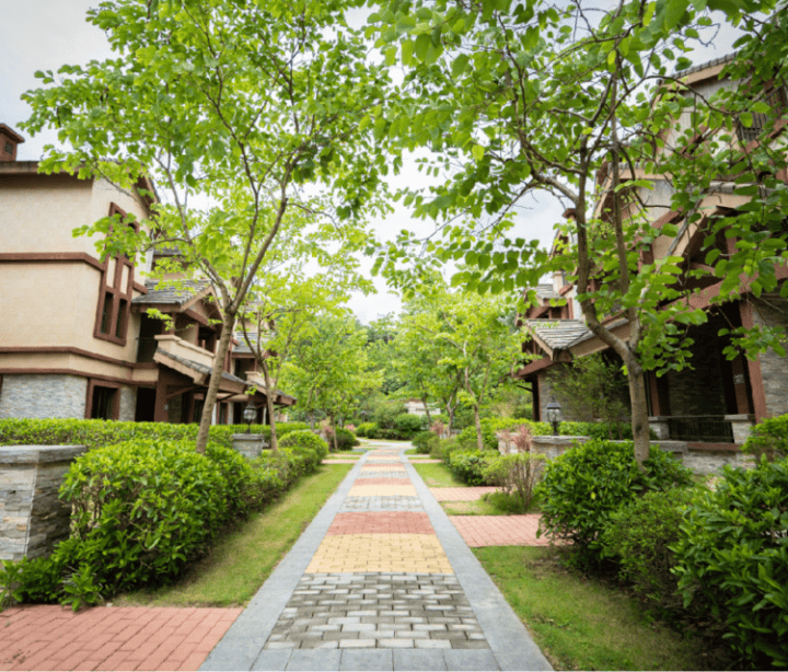 大城云山整个社区呈葫芦状,三面环山聚宝盆格局,置身于超4000亩北回归线森林公园里,植物资源极为丰富,公园内所有测点负离子浓度都在1500个/㎡以上,公园内空气清洁度达到最清洁的A级,典型的低密度住宅,整个建筑依山而建,顺山而居,形成融于自然山水的生活社区——真正公园里的家