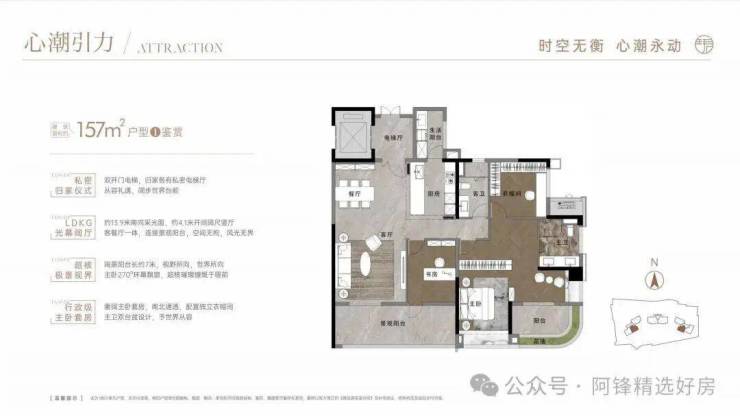 项目一共有3栋楼,层高20-26,总户数仅166户,产品为157-196-203-253-257平大平层,主打豪宅,面向的客群非常纯粹。