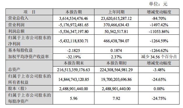 2020年,泰禾集团营业总收入36.14亿元,同比减少84.70%;营业利润为亏损51.76亿元,同比大幅下降;利润总额和归属于上市公司股东的净利润相应的大幅下降。归属股上市公司股东的净亏损54.32亿元。