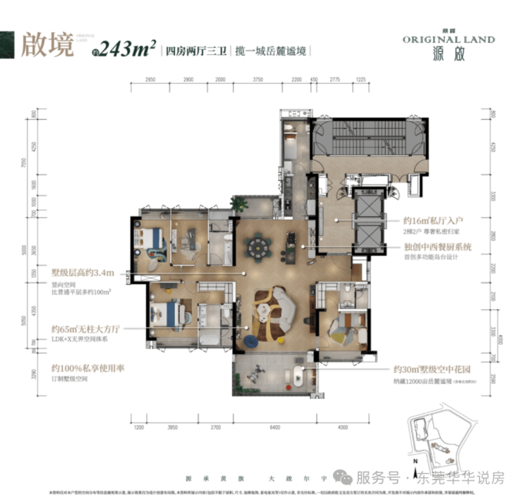 1.、地段景观佳:处黄旗北富人区、黄旗山北麓,临近多生态景观,景观视野绝佳。2、教育交通优:紧邻东莞外国语学校,周边多优质校;公交站多,出行便利。3、 规划配套全:开发商经验足,园林、建筑设计精妙;有约 3000㎡高端会所 4、户型设计强:约 243 - 285㎡大平层,两梯两户,空间开阔、布局合理,用材高端。