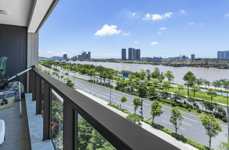 比如新开板房的115平的四房,极致方正,约6.5米大阳台,在观景尺度上则极为宽阔,推门见江一览无余。