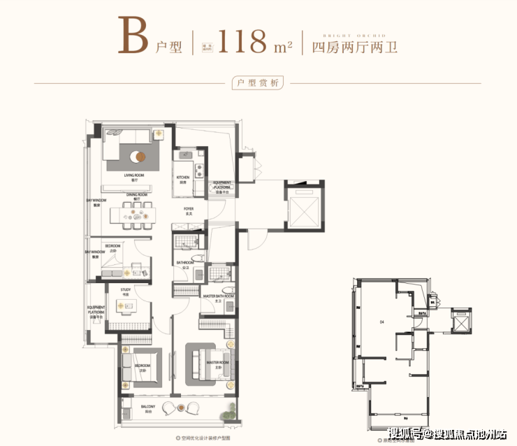 ①堪称“百变空间魔法师”,可做四房或可变成三房,如果变成三房,大厅的侧面面宽高达8.5米,通透明亮。