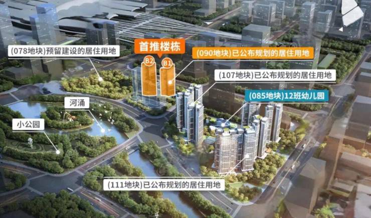 住宅项目分南北组团开发,整体预计约1300套单元。距离广州南站约400米,约5分钟步行距离,有效减少轨道列车及周边车辆干扰。首推北组团B1#、B2#楼栋。B1#和B2#均为两梯四户设计,高24-25层,总货量约186套。