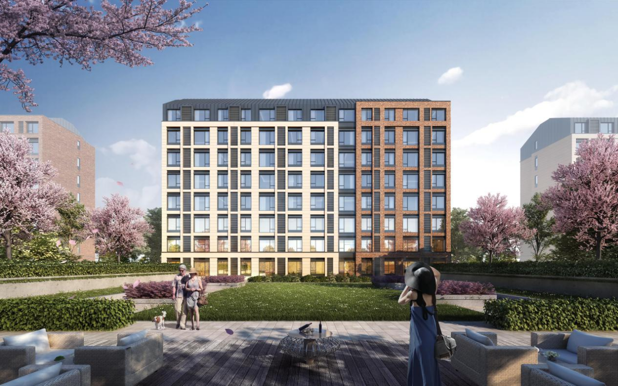 建筑设计上,4-8层洋房建筑,经典红砖肌底,与米色、褐色、灰色混搭,不同功能的建筑节点,设计不同的立面视觉,营造丰富的街区面貌。