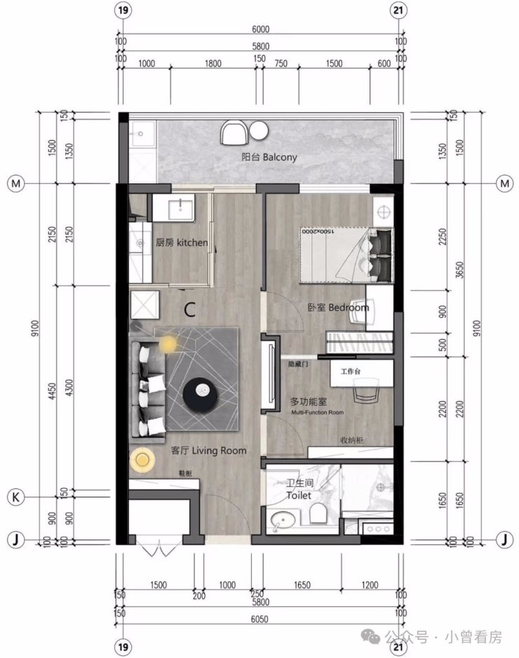 最小的48㎡单位,基本就是“一眼睇晒”的一房一厅,卧室连阳台,应该比较舒适。