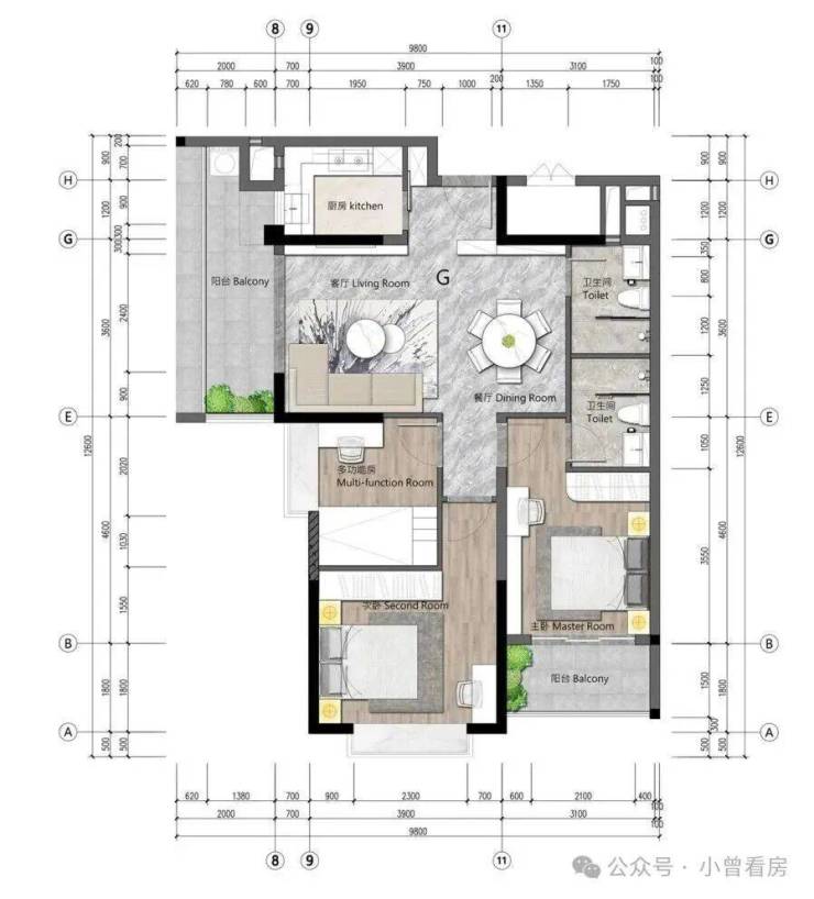 主卧带有南向阳台,算是一个卖点。当然,也可以根据实际需求,将阳台改成卧室一部分。