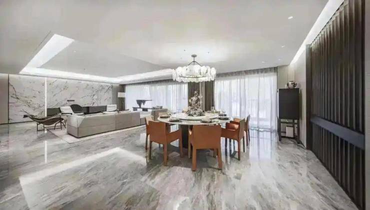 奢阔户型设计:主力户型430-450㎡,采用“4房+1房2厅6卫”豪华配置,公区面积近100㎡(如东边套12.4米开间双厅、南边套13.7米开间双厅),主人衣帽区带大幅落地窗,空间通透感极强12。