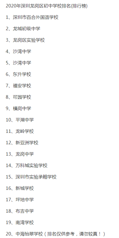 根据2019年度龙岗区教育局较新的学区划分,项目的小学在保安学校的学区范围内,而初中学区则在园山实验学校学区范围内,都是排名靠后的学校。